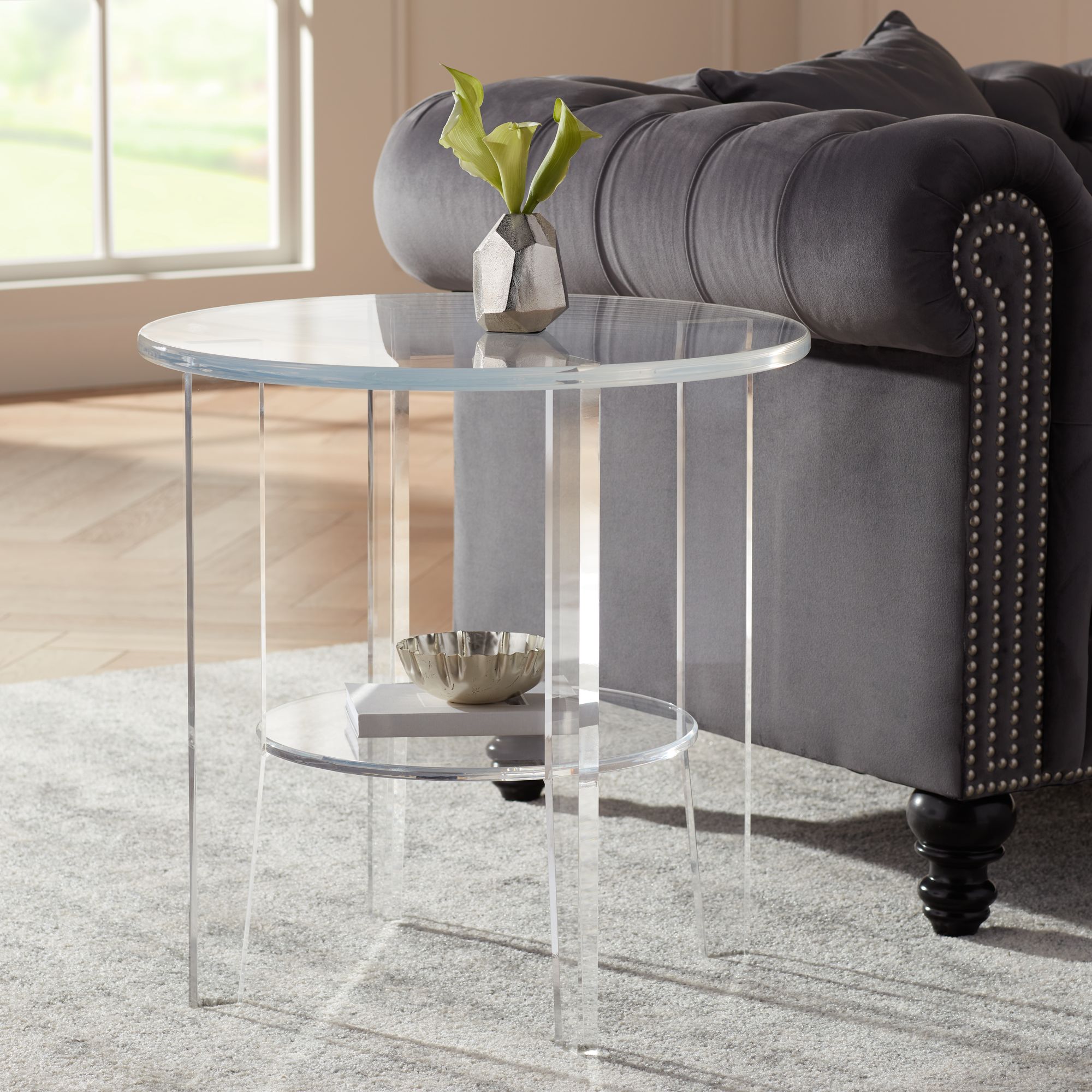 Sleek in design, this table needs to be in your home right away! An end table is the piece you will use to place your beverage, tv remote, or book right next to you. The lucite end tables available on the site are made of different materials such as wood, aluminum, marble, steel, glass and so on, so that you can pick the best one to go with your existing decor. Crafted from clear lucite plastic, this compact piece measures just 22'' h x 14'' w x 13'' d overall, making it a fine fit for smaller spaces. Bassett mirror patinoire round end table. Show off your favorite knickknacks on the. Get it as soon as wed, mar 17. Located in palm springs, ca. It is lucite, so its very limber/flexible, and won't support heavy lamps, but i use it as a side table in the tv room, to set the remotes, and a cup of coffee on when i'm watching tv. Acrylic coffee, console, sofa & end tables : Before you decide, figure out which size side table you need. The streamlined base is finished in shining chrome to add a bold modern touch. Clear end z table lucite acrylic lucite plexiglass entirely clear, this geometric z shaped plexiglass side table won't clash with any color layout.